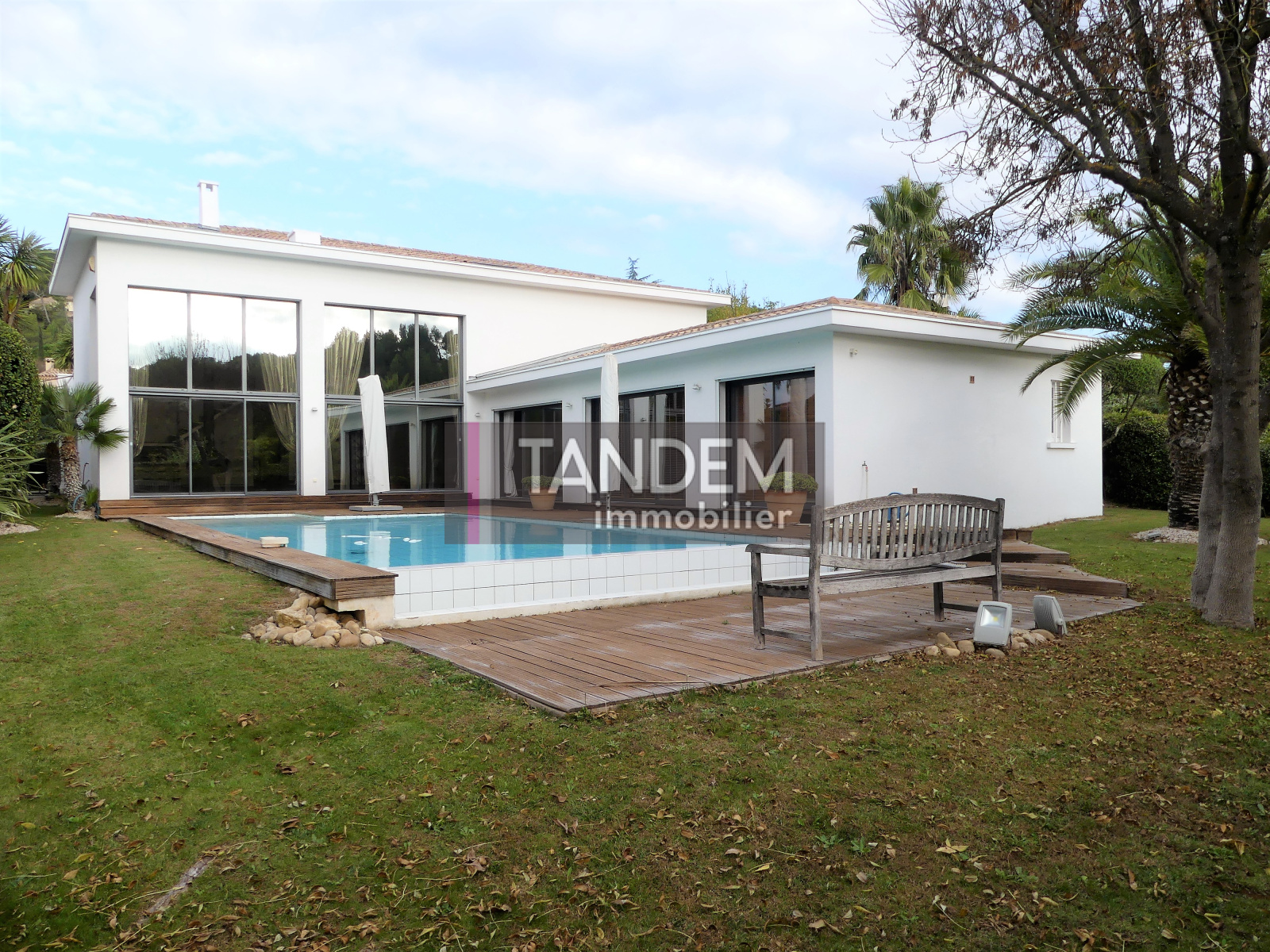 A ETE VENDUE PAR TANDEM IMMOBILIER. A Montferrier sur Lez, au calme et à proximité de toutes commodités. Cette villa d'achitecte à l'excellente situation géographique vous séduira par ses magnifiques volumes et la qualité de ses prestations. La pièce de vie de plus de 70m² aux larges ouvertures et agrémentée d'un parquet massif ainsi que d'une cheminée Focus vous charmeront tout autant. La cuisine parfaitement aménagée et équipée, la salle à manger de 25 m² sont autant d'atouts pour profiter d'une vie de plain pied. Sur le même niveau la chambre parentale où rien n'est laissé au hasard avec une salle de bain et dressing de grande qualité. Quand à l'étage, il accueille un bel espace nuit avec salle d'eau et un bureau/bibliothèque en mezzanine. Pour compléter l'ensemble, un garage deux véhicules et un studio indépendant de 26 m² aux prestations de même standing. Le jardin est clos et paysagé avec vue dégagée et piscine à débordement.