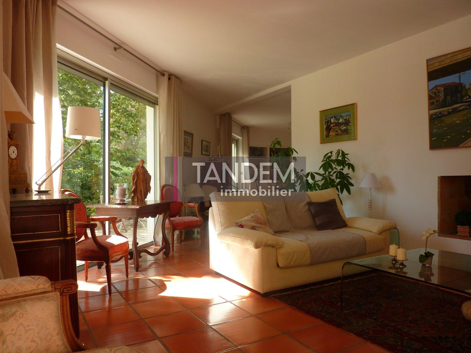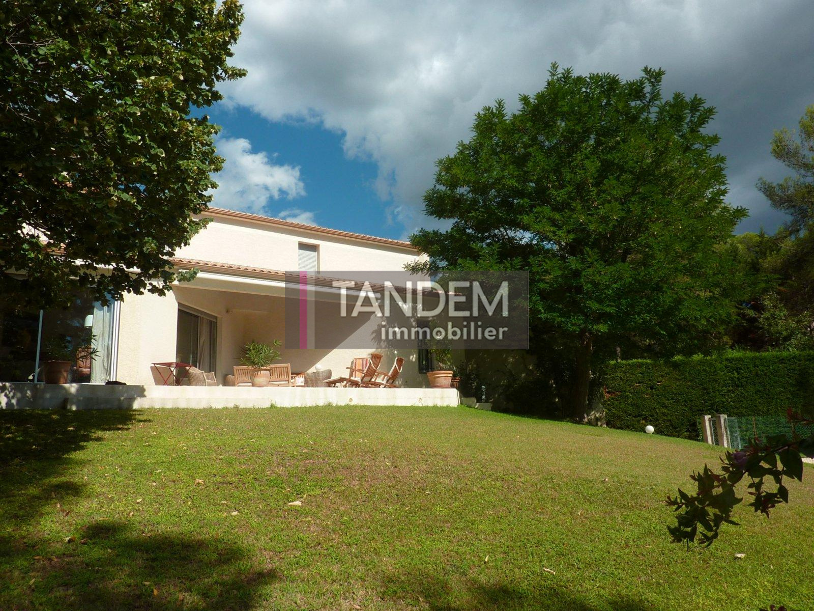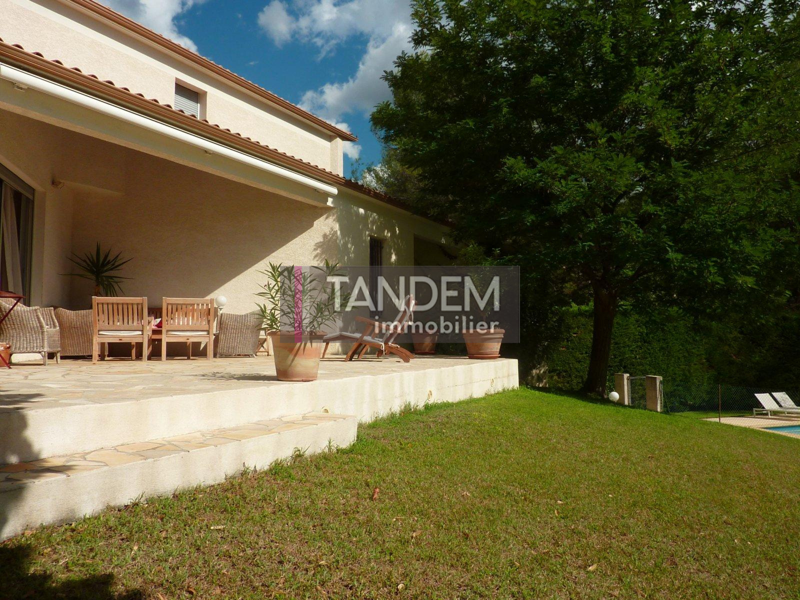 VENDU PAR TANDEM Montferrier sur Lez, nichée dans la verdure, cette très belle villa cossue est idéale pour une grande famille. Elle offre un vaste salon-séjour, très lumineux, aux larges baies ouvertes sur le jardin et la piscine, 5 chambres, un bureau, une cuisine équipée et son office, et 3 bains. Elle offre 200 m² + annexes : salle de jeux, buanderie, cave, garage ... Sa parcelle de 1900 m² paysagée est idéalement située, dans un quartier calme et préservé, à proximité du coeur de village