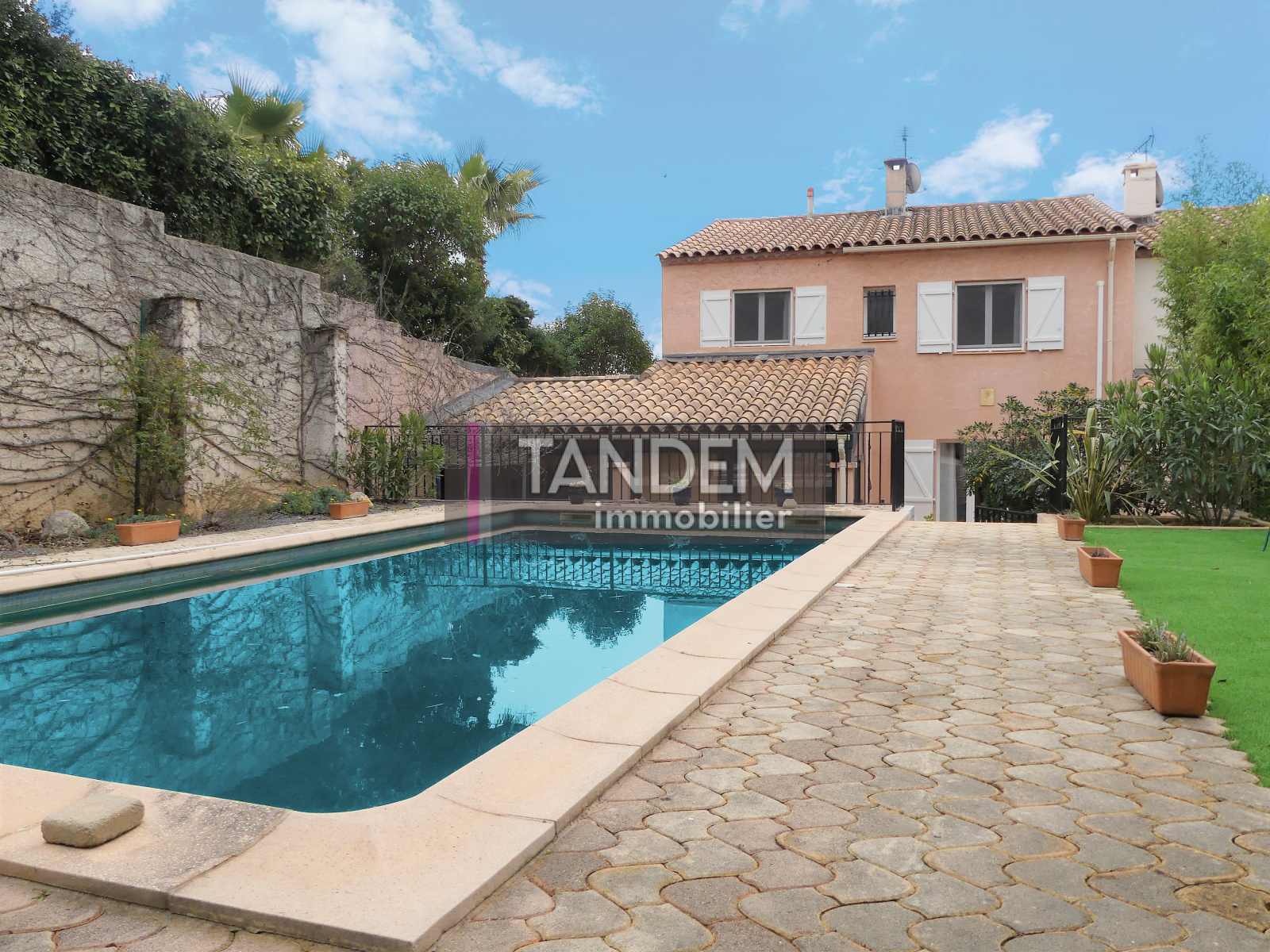 A ETE VENDU PAR TANDEM IMMOBILIER EXCLUSIVITE Sur les hauteurs du golf, avec une superbe vue panoramique, jolie villa familiale de 1996 parfaitement entretenue. Le rez-de-chaussée offre une belle pièce de vie avec cheminée, une cuisine repas avec cellier et une chambre avec salle d'eau. A l'étage, 4 belles chambres dont une suite parents avec salle de bains privative. Au sous-sol, en plus du garage, une grande salle de jeu et réserve. Jolie parcelle avec véranda prolongée d'une terrasse et d'un très bel espace piscine. Une villa très fonctionnelle et familiale avec ses 5 chambres et ses nombreux rangements.