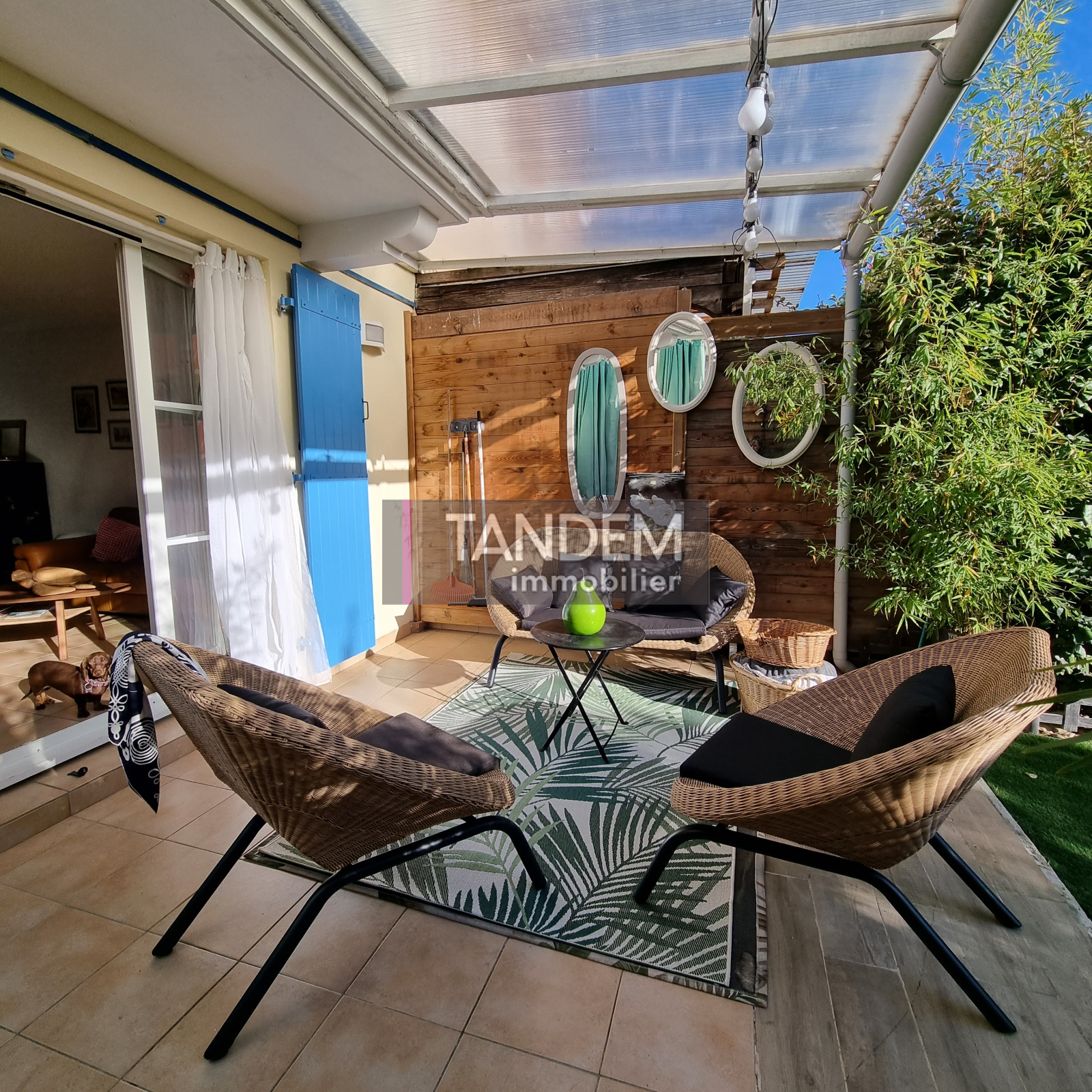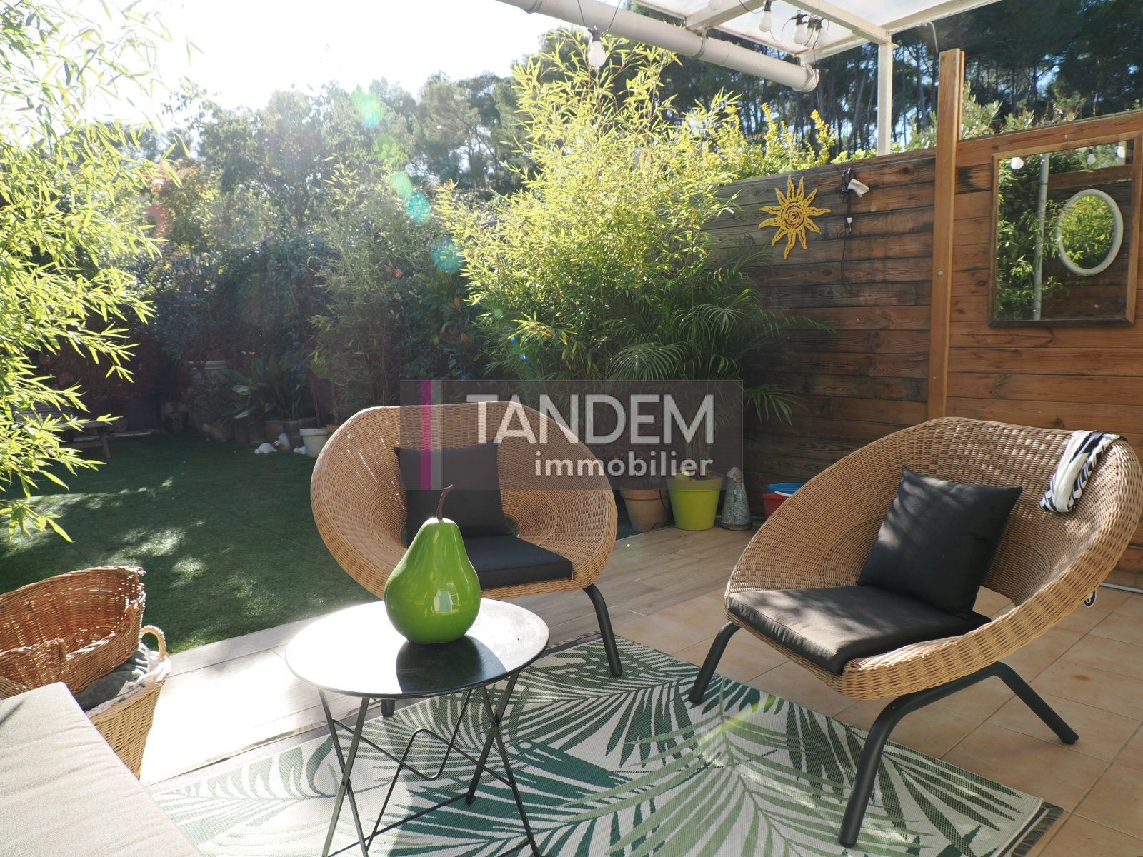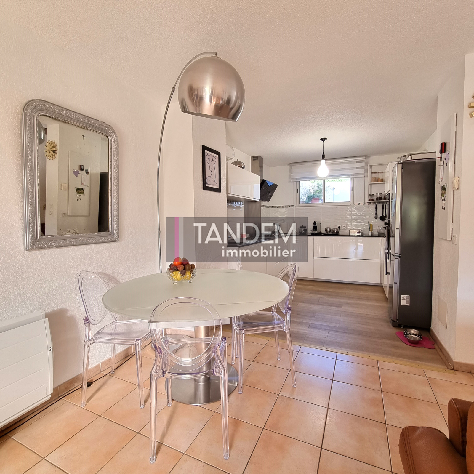 VENDUE PAR TANDEM IMMOBILIER. St Clément de rivière, maison de village de 2005, de 76 m² habitables. En rez-de jardin, une belle pièce de vie de 36 m² avec sa cuisine équipée récente, ouverte sur un coquet jardin verdoyant à l'abri des regards. A l'étage, 2 chambres, dont une chambre parentale avec dressing, ouverte sur un balcon offrant une jolie vue sur la pinède. Salle de bains. WC. Garage 15 m². Soignée et parfaitement entretenue, la maison a fait l'objet de travaux d'amélioration récents comme l'installation d'une climatisation réversible, d'une cuisine équipée ou l'isolation des combles.... Très calme et à 2 mn à pied des écoles, de la crèche et des commerces.