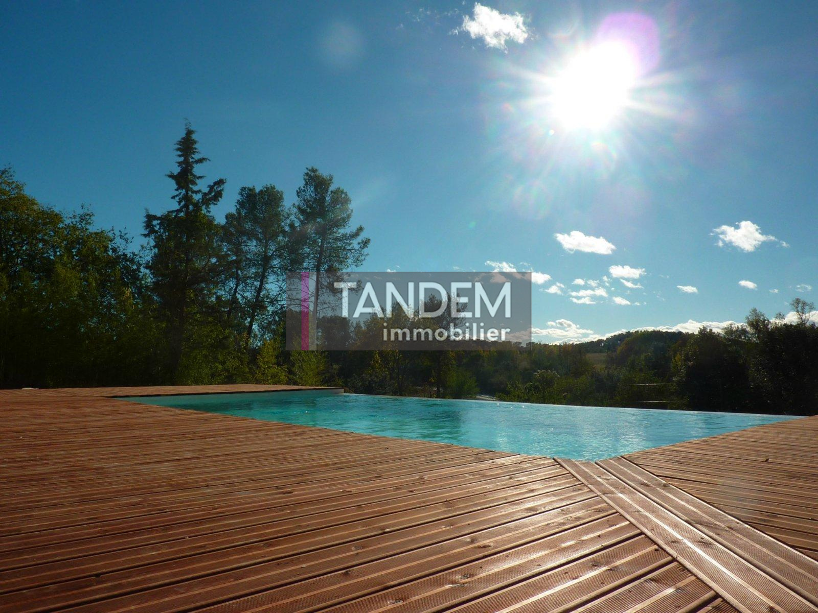 VENDU PAR TANDEM IMMOBILIER ! Secteur très résidentiel à Saint Clément de Rivière, jolie villa de 148m² habitables entièrement rénovée. Prestations très contemporaines, avec un beau séjour ouvert sur terrasse surplombant la piscine et sa plage de 140m². Cuisine entièrement équipée, 4 chambres, 2 salles d'eau et magnifique salle de bain, 1 grand bureau. Vaste garage et cave. Très jolie piscine à débordement, vue dégagée. Parcelle de 1200m² à paysager.
