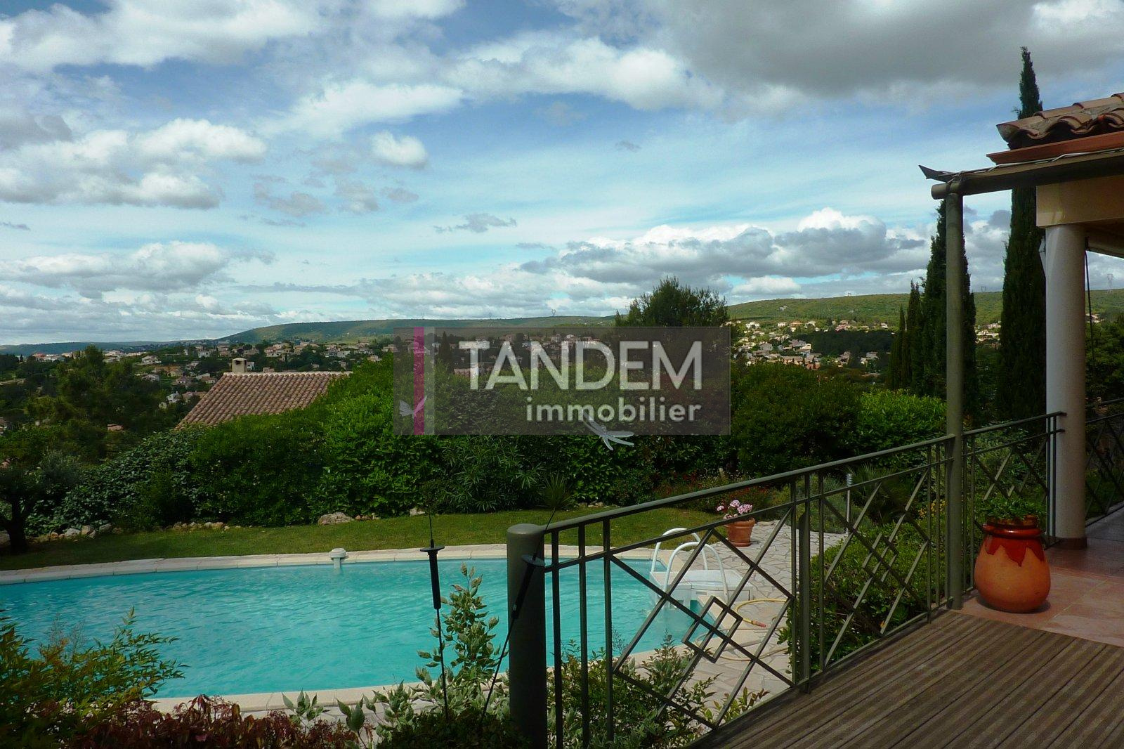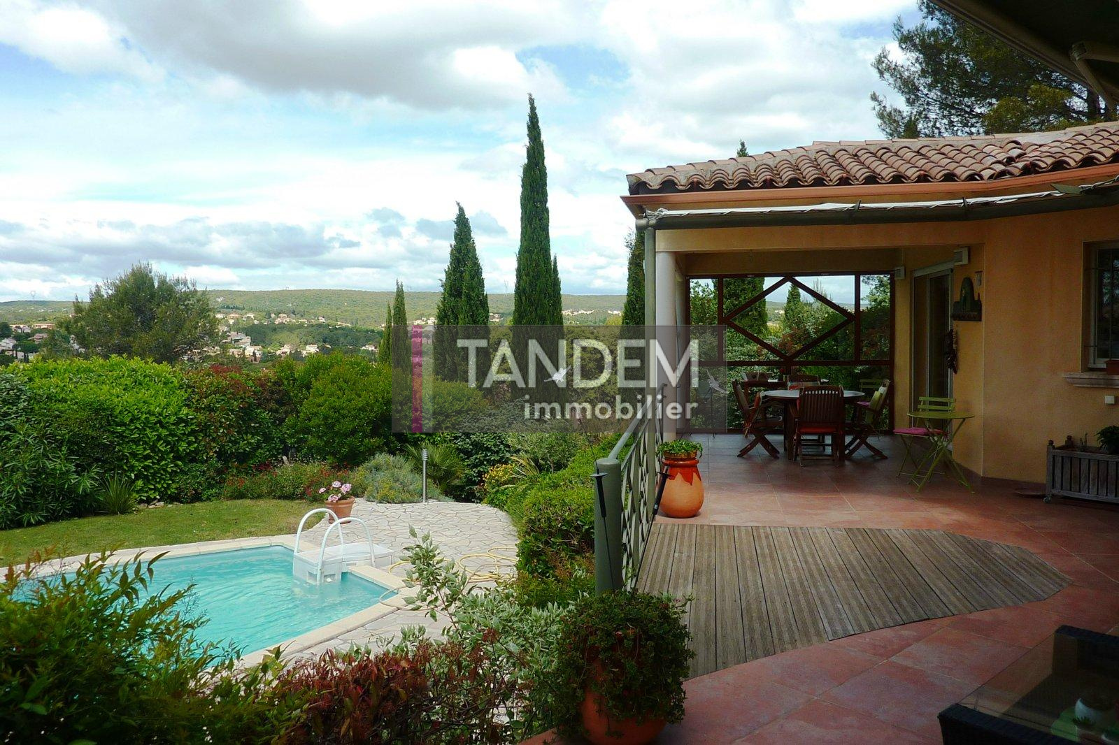 VENDU PAR TANDEM IMMOBILIER ! Sur les hauteurs de Saint Gely, superbe villa cossue avec vue imprenable sur les collines. Très bel espace de vie ouvert sur une grande terrasse, spacieuse cuisine équipée et arrière cuisine. En plain- pied, une grande suite parents avec dressing et salle d'eau, un bureau et une chambre avec salle d'eau. A l'étage, 2 autres chambres et combles en partie aménagés. Au sous sol , un grand garage, buanderie et cave. Belle parcelle d'environ 1000m² avec piscine à l'abri des regards.