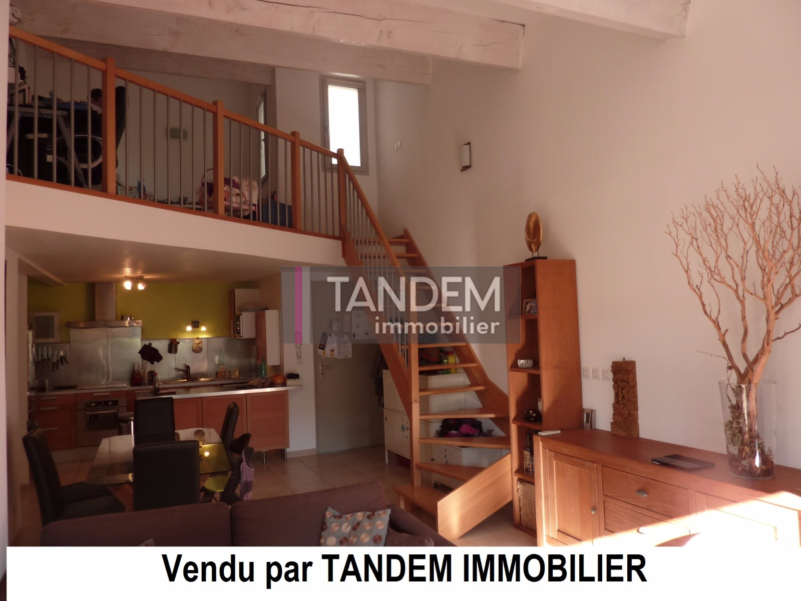 VENDU PAR TANDEM IMMOBILIER ! Dans une petite copropriété récente (4 appartements) située au centre du village, charmant FF4 duplex, en premier et dernier étage. Beau séjour de 30m² + cuisine US équipée, chambre et salle de bain. A l'étage, une belle mezzanine et une chambre avec sa salle d'eau. Terrasse ensoleillée de 15 m². Double garage de 25m². Bus, commerces et écoles à 3 mn à pied. Charges 36 €/mois