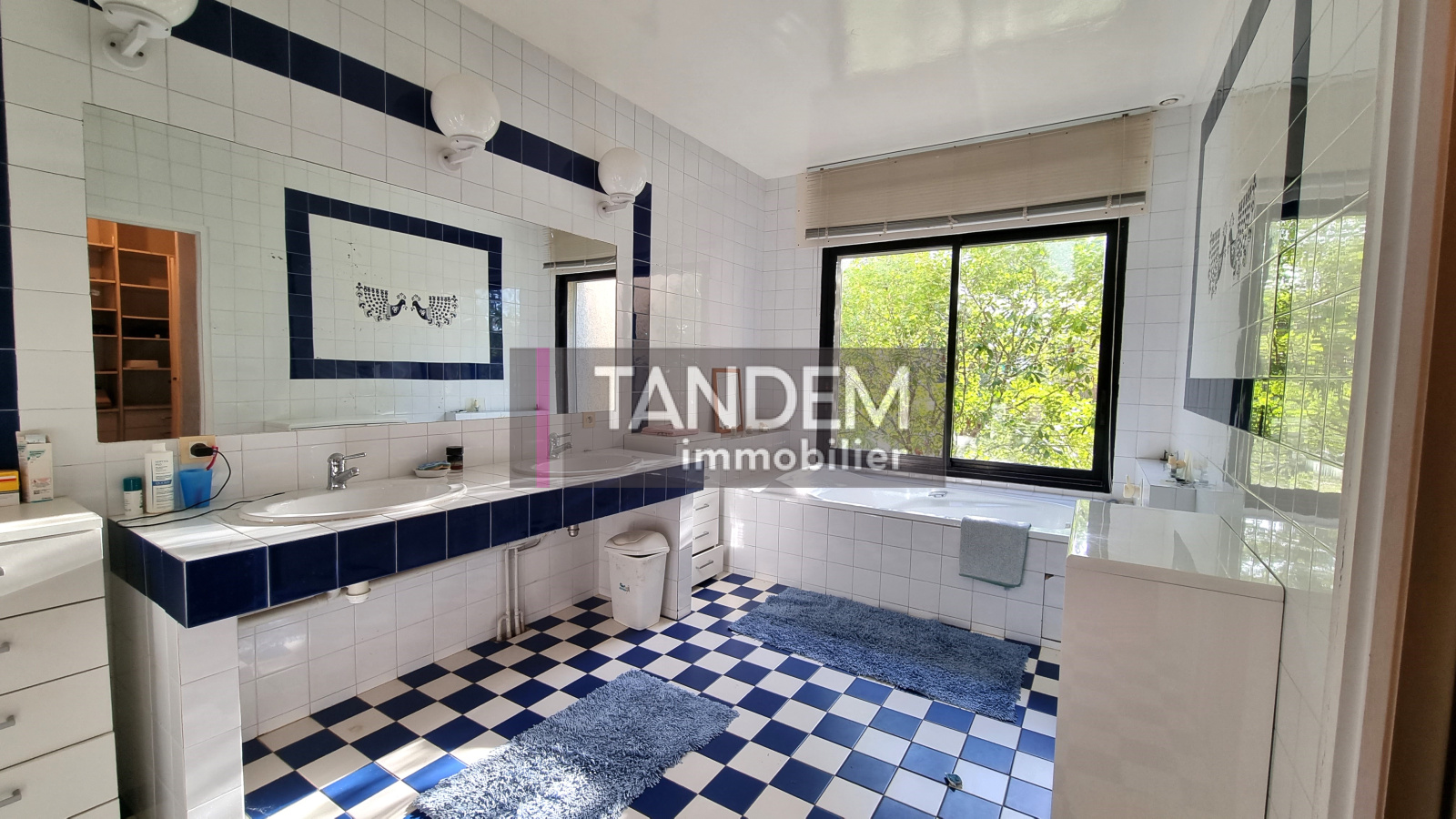 VENDUE PAR VENTE TANDEM Immobilier. Montferrier sur Lez, sur les hauteurs du village, superbe villa bourgeoise au charme intemporel, nichée au sein d'un parc d'environ 4.700 m². Vaste salon/séjour généreusement ouvert sur le jardin par de grandes baies vitrées, cuisine dinatoire prolongée d'une belle terrasse couverte, suite parentale 33 m² avec dressing et salle de bains, 3 autres chambres, chacune avec salle d'eau. Bureau en mezzanine. Garage. Très beau parc arboré avec espace piscine. Intimité absolue.