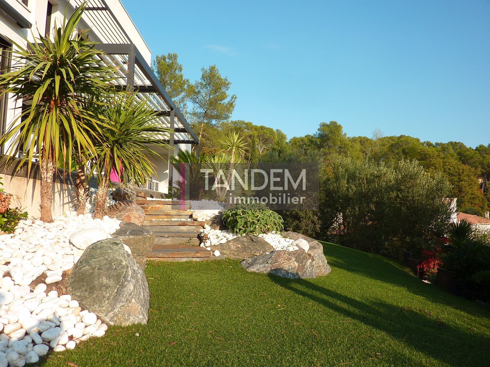 VENDUE PAR TANDEM IMMOBILIER. EXCLUSIVITE ! Montferrier sur Lez, sublime villa contemporaine récente offrant 260 m² habitables. Matériaux et finitions de très grande qualité. Superbe salon/séjour de 66 m² tout en volume et en transparence, ouvert sur une large terrasse. Cuisine-repas de 26 m². Salon TV. Une suite parents de 43 m² avec dressing et salle de bains. A l'étage, deux autres suites (24 m² et 25 m²), chacune ouverte sur leur solarium privé. Appartement T2 indépendant. Garage. Parcelle 2.000 m² offrant une vue imprenable sur les collines. Un produit unique sur le village.