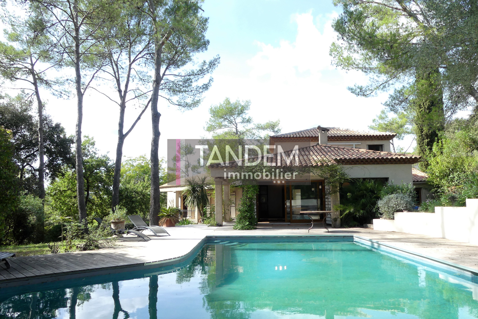 VENDU PAR TANDEM IMMOBILIER Exclusivité ! Très bel environnement pour cette jolie bastide située sur les hauteurs du village.193 m² habitables. En plain-pied, un très beau salon/séjour de 50 m² ouvert sur le jardin par de grandes baies vitrées. Cuisine attenante entièrement équipée, grande buanderie, belle suite parents avec sa salle de bains, une chambre, une salle d'eau et un bureau. A l'étage, 2 autres chambres et salle de bains. Une annexe de 71 m² en rez-de-jardin composé d'une grande pièce carrelée avec baie vitrée, et d'un atelier, complète la partie habitable. Très belle parcelle arborée d'essences méditerranéennes, offrant un superbe espace piscine avec une grande plage bois. Intimité et calme absolu. Environnement exceptionnel.