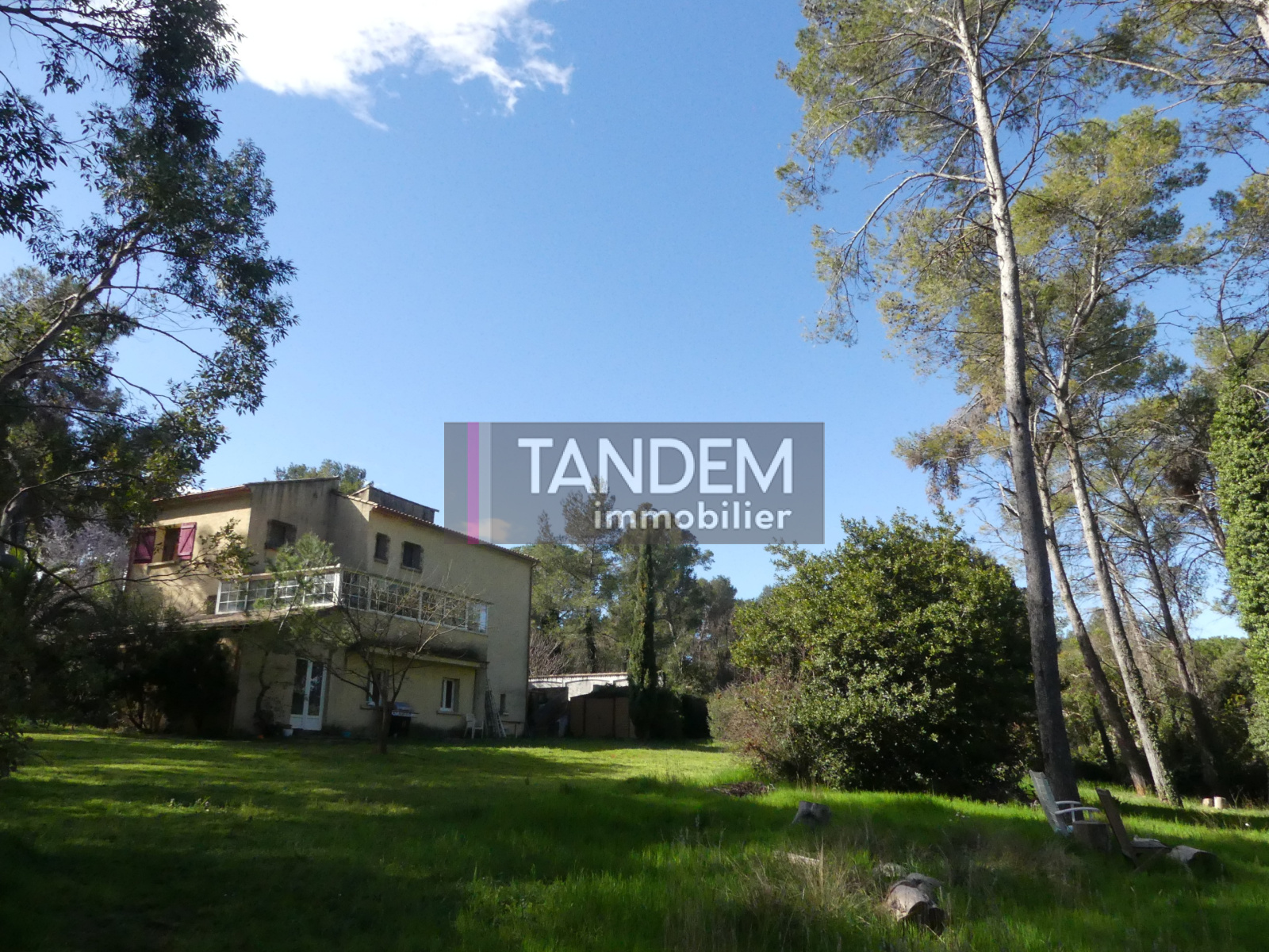 VENDU PAR TANDEM IMMOBILIER Sur les hauteurs du village, dans la pinède, propriété ofrant villa principale de 250 m² et T3 indépendant, à rénover intégralement. Superbe parcelle arborée de 5.000 m² divisible (en 2 lots). A l'écart de toute nuisance. Calme absolu.