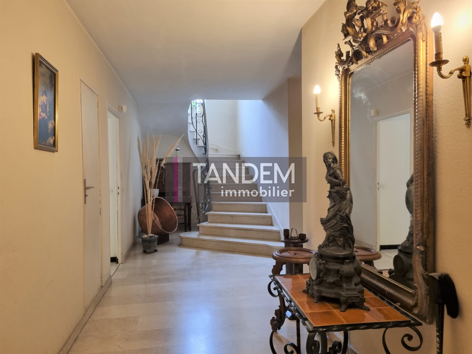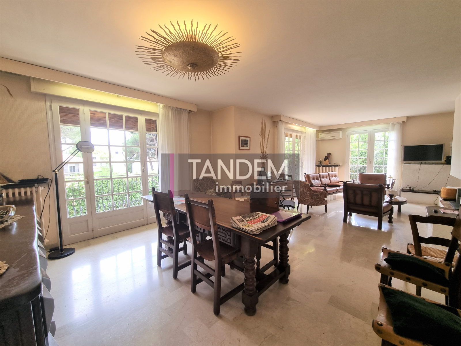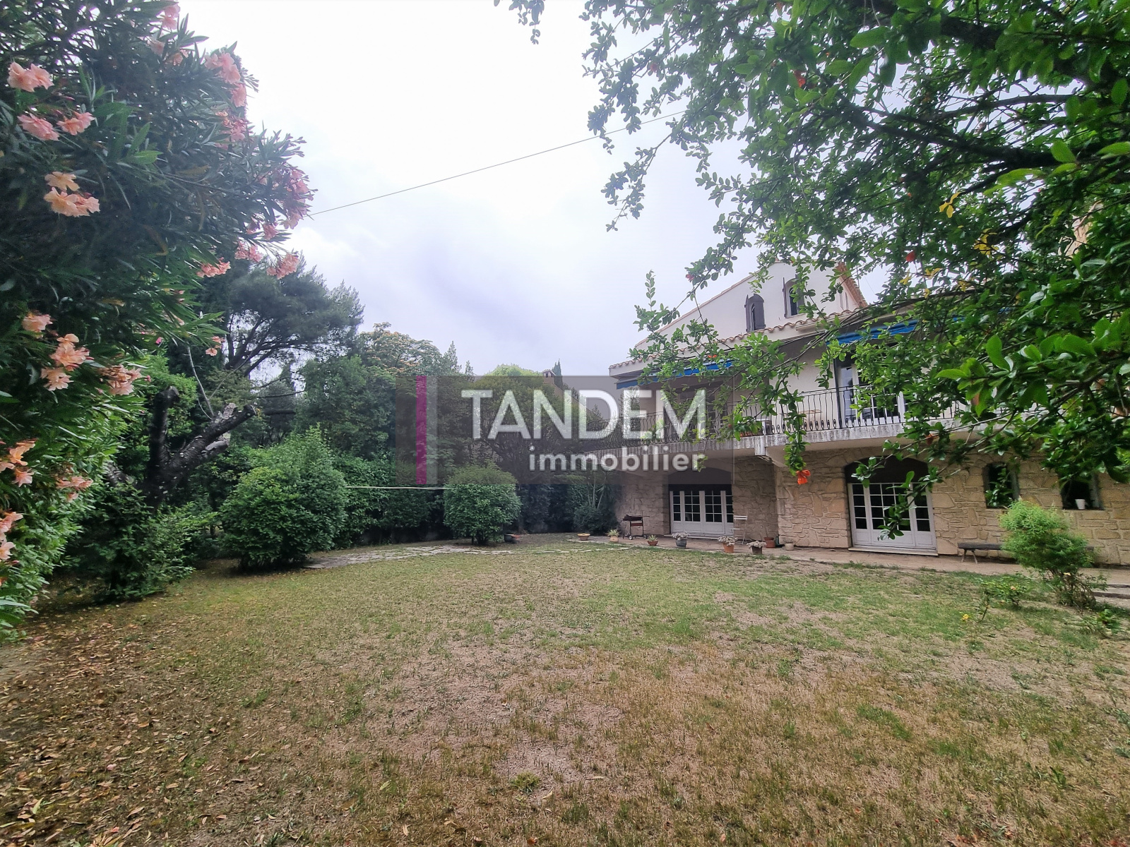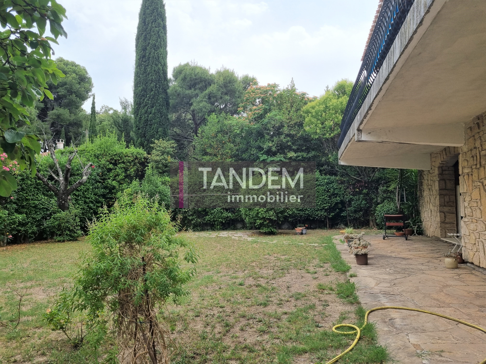 VENDUE PAR TANDEM IMMOBILIER. Montpellier quartier agriculture, belle bâtisse bourgeoise des années 70 sur une parcelle de 863 m² plane et arborée. Au rez-de-chaussée, 2 chambres, une vaste salle de jeux et un grand garage. A l'étage, salon/séjour exposé sud-est/sud-ouest, avec cheminée. Attenant une cuisine de 23 m² le tout ouvert sur une belle terrasse. 3 chambres, bureau et salle de bains complètent ce niveau. Au 2ème étage, 2 belles chambres mansardées de 24 m² chacune, et salle de bains. En fond d'impasse, le jardin, au calme et à l'abri des regards, peut facilement accueillir une piscine. Située à 5mn à pied du tramway, cette belle villa fera le bonheur d'une grande famille. Elle offre également la possibilité d'y exercer une activité libérale, ou de créer 2 logements.