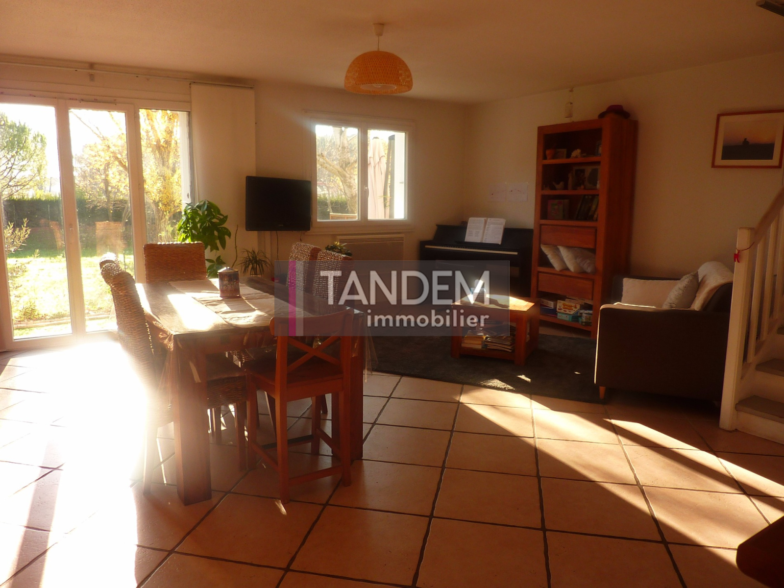 VENDU PAR TANDEM IMMOBILIER. Clapiers, au calme et à proximité du centre village, villa T5, agréable à vivre, offrant 93 m² habitables. Au rez-de-chaussée, belle pièce de vie de 41 m² avec cuisine équipée, ouvrant sur terrasse bois et jardinet. A l'étage, 3 chambres, chacune avec placard, et bureau. Vue dégagée sur espaces verts.
